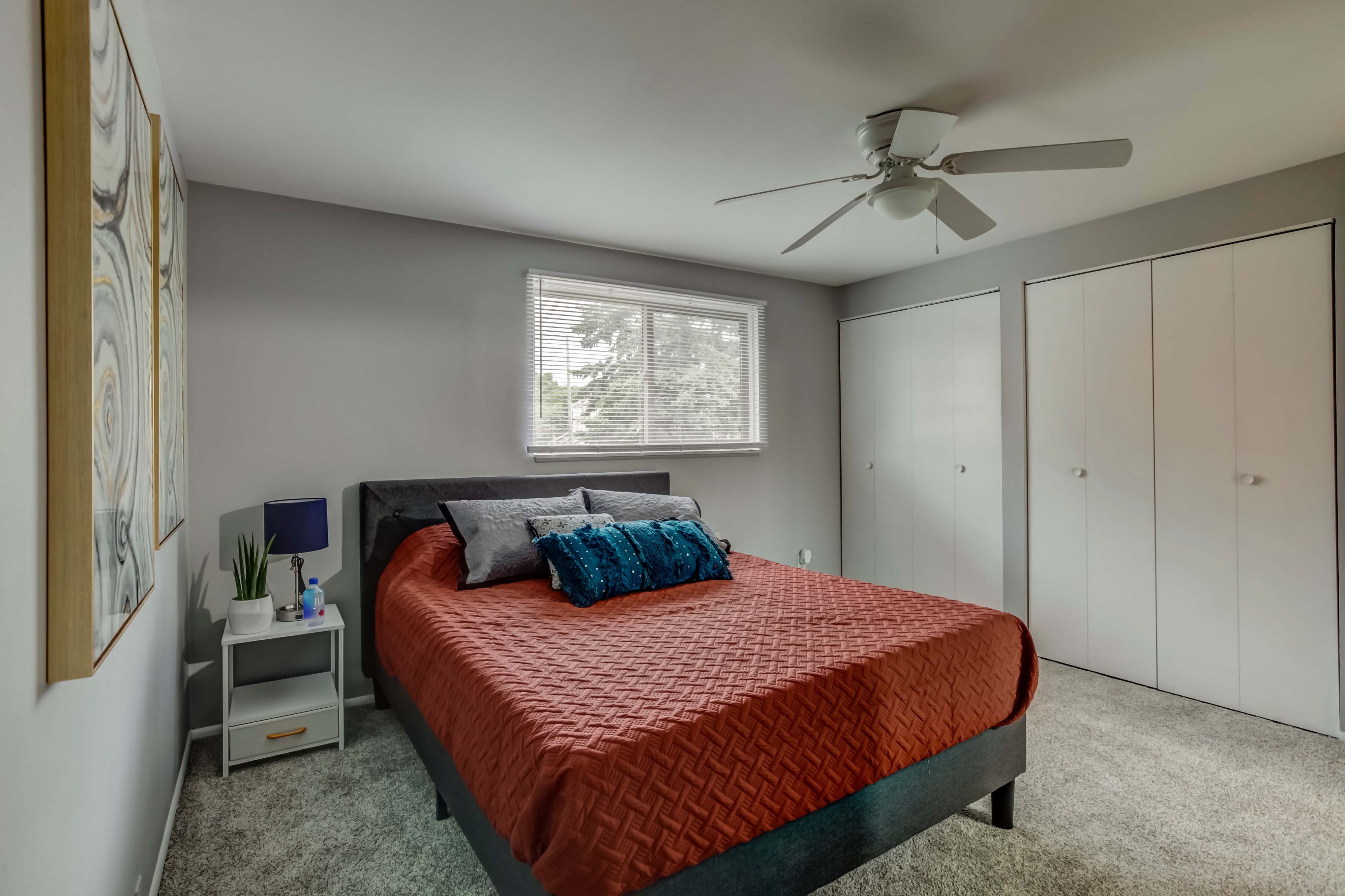 Many amenities, patio, basement with laundry, dining table for four, fully stocked kitchen. Open floor plan.